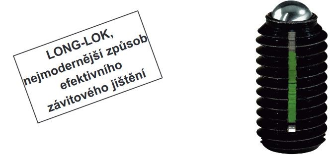LONG-LOK jištění závitu je zabudováno do pružných opěrek KIPP. Jakékoli doplňkové díly odpadají, tj. bezpečnostní kroužky, pružné podložky nebo protimatice. Tím jsou rozhodujícím způsobem sníženy náklady na montáž i uskladnění.